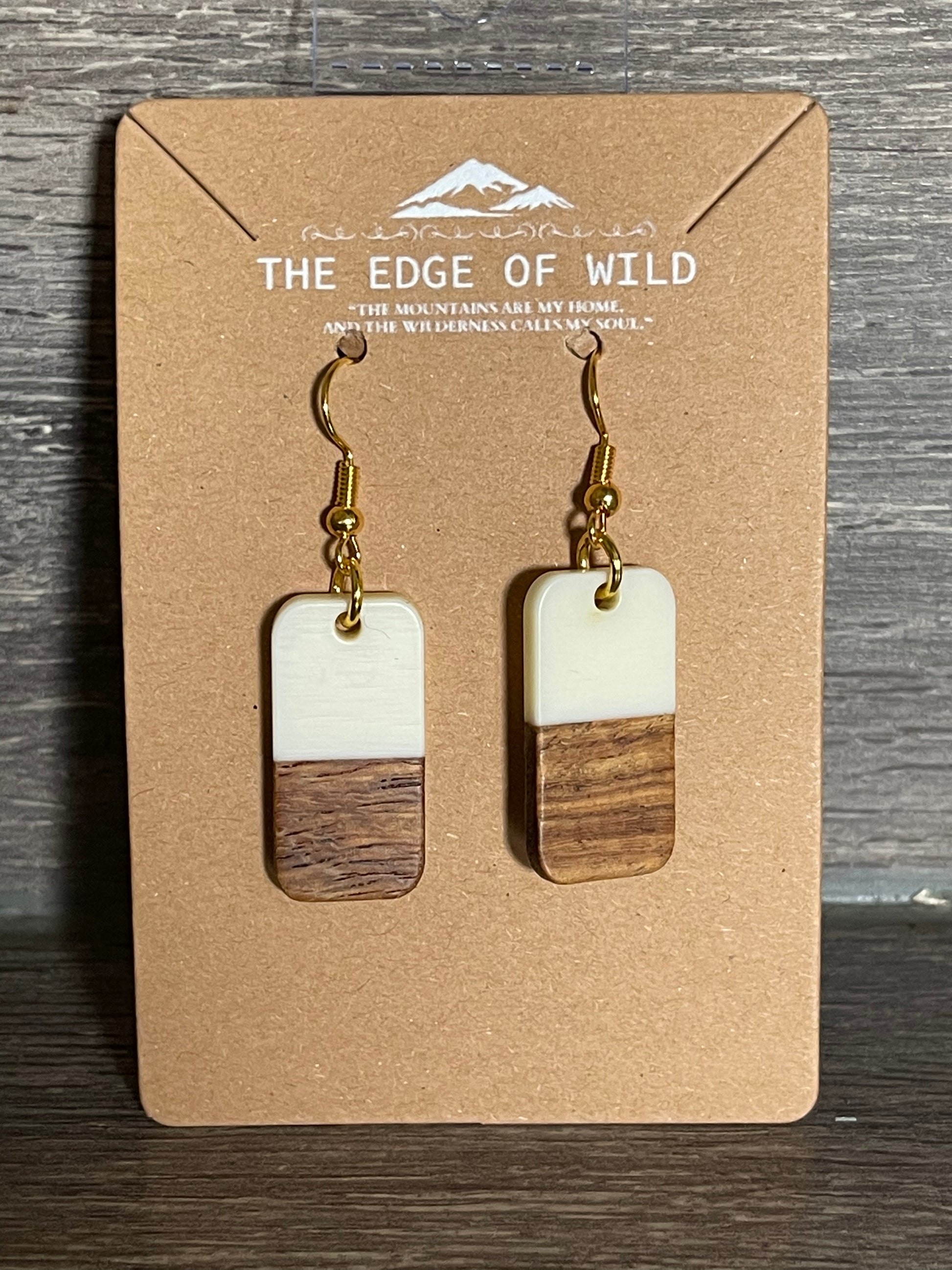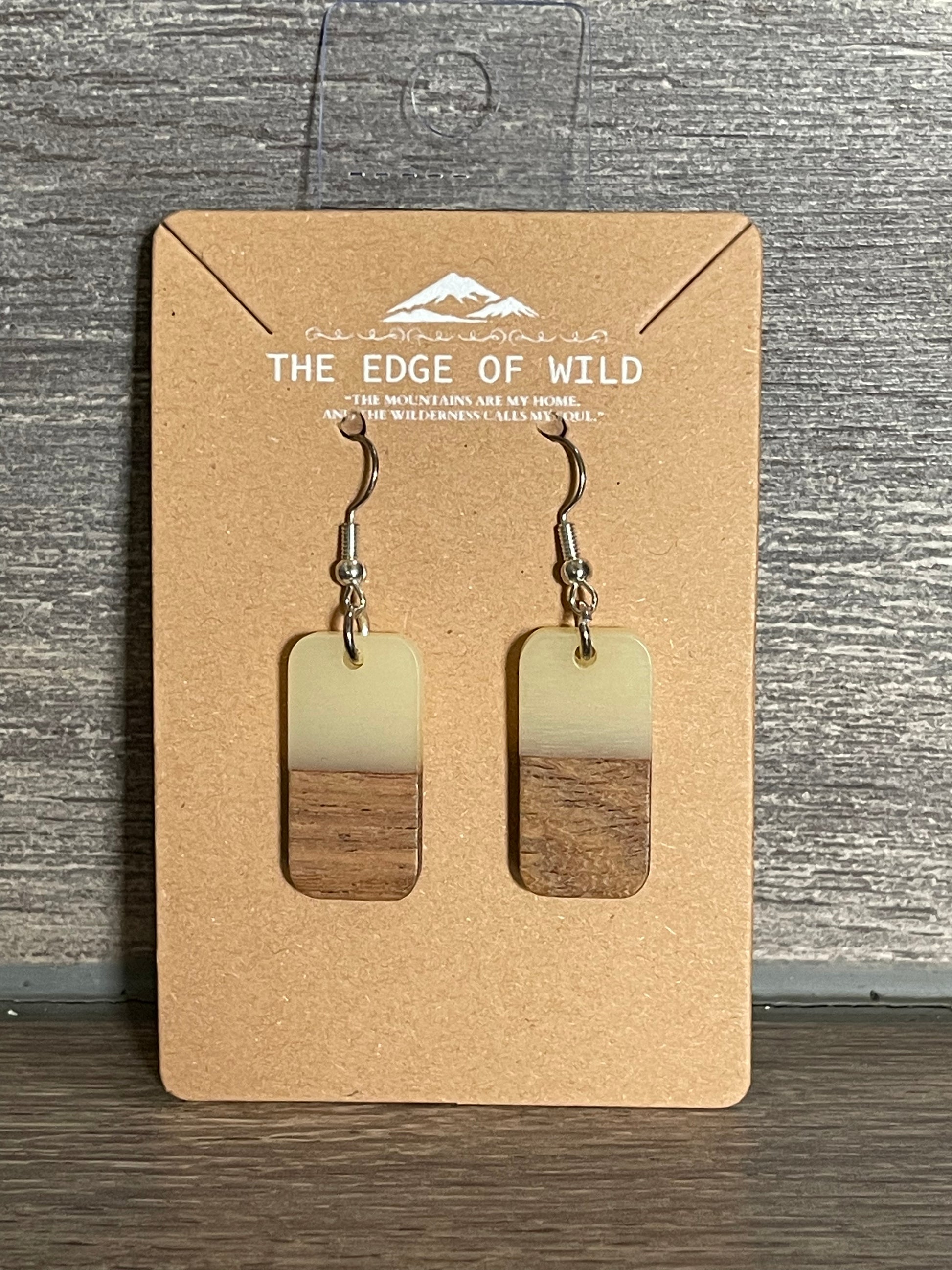 WOODEN AND RESIN RECTANGLE EARRINGS